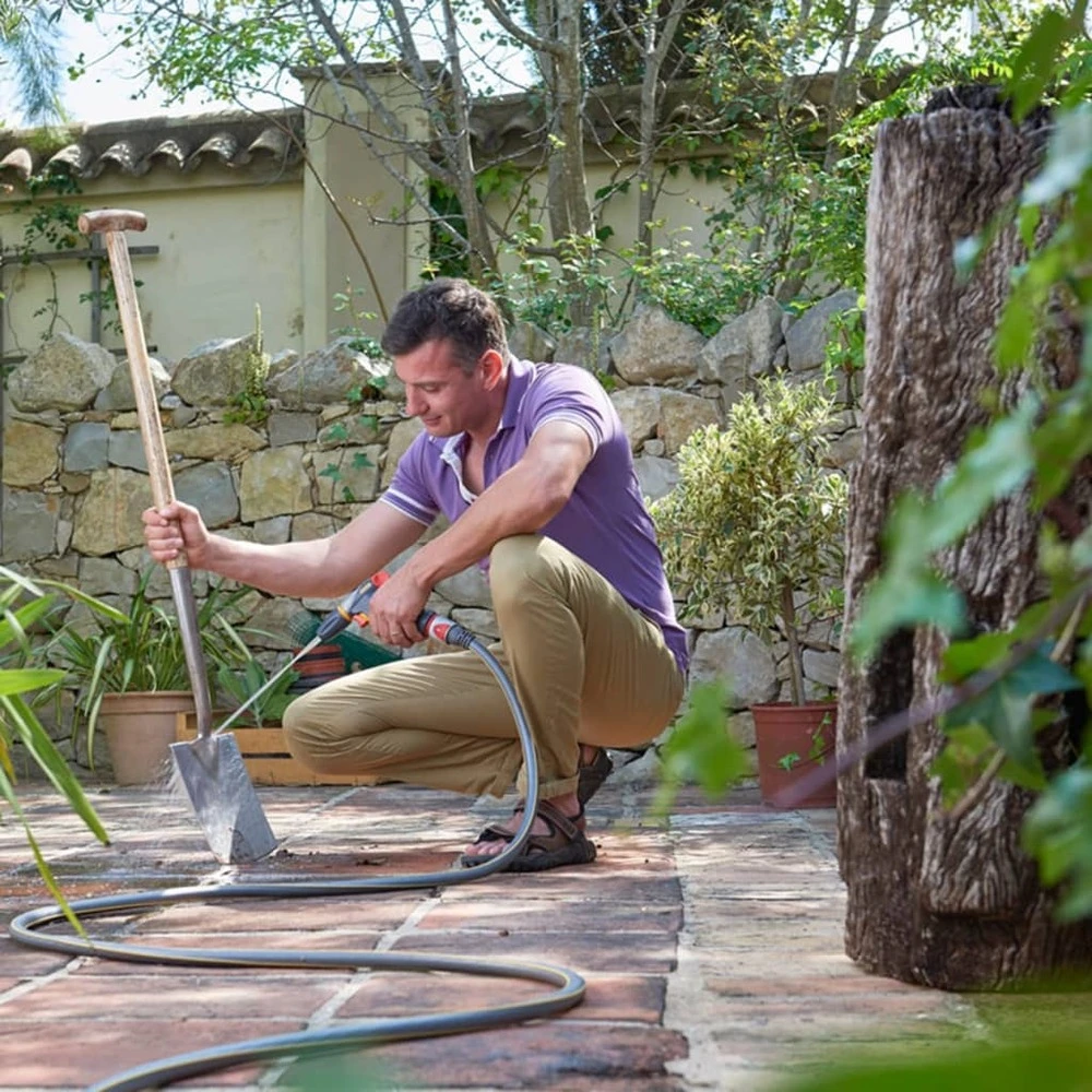 Ce pistolet d’arrosage pour tuyau jet spray ultramax d’hozelock, extrêmement durable, possède un corps entièrement en métal et un raccord mâle étendu. Son revêtement lisse en caoutchouc sur le corps et la tête du pistolet offre une meilleure protection pour plus de durabilité. Le pistolet jet spray ultramax est équipé d’une gâchette unique à contrôle de débit. Plus la gâchette est enfoncée, plus le débit augmente, les plantes vulnérables et les jeunes plants sont donc protégés des jets d’eau trop puissants, cela prévient également les éclaboussures. Ce pistolet d’arrosage a 3 jets différents : pulvérisation en cône pour arrosage délicat ; jet puissant pour nettoyage ; remplissage rapide pour remplir seaux et arrosoirs. La poignée ergonomique est dotée d’un verrou de gâchette pour pulvérisation continue et d’un régleur de débit facile à utiliser pour donner à son utilisateur un contrôle total sur le jet d’eau.