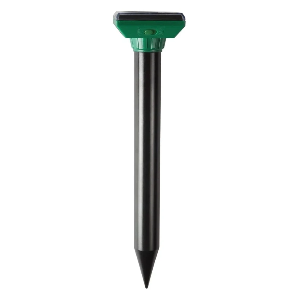 Le répulsif à ultrasons abs 6060122 de la marque nature fonctionne également sur les campagnols d’eau européens et les taupes, et est équipé d’une pile solaire qui a une durée de vie de fonctionnement de 14 jours à pleine charge. Il produit un son à ultrasons toutes les 30 secondes. Comme leur audition est très sensible aux vibrations du sol, les transmissions par ultrasons gênent les campagnols d’eau européens et les taupes, car il simule la présence de prédateurs. L’appareil doit être enfoncé dans le sol près de l’entrée de la taupinière.