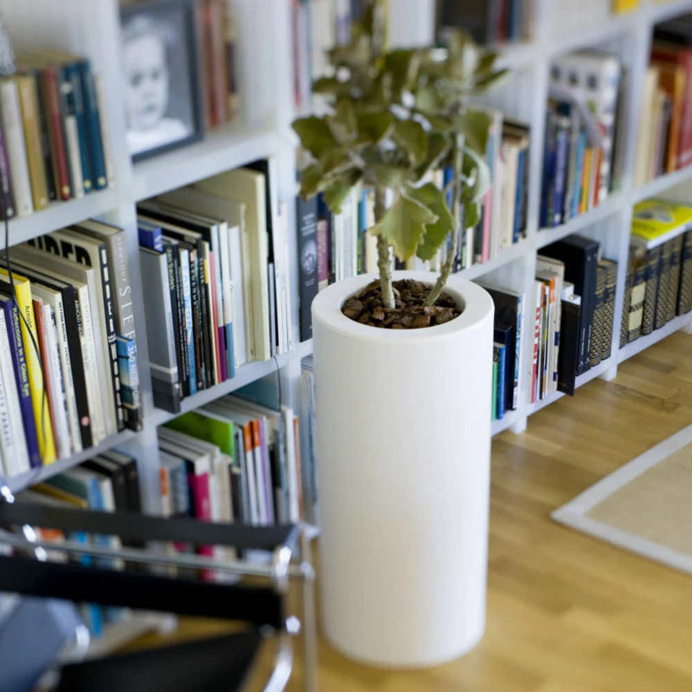 haut pot cylindrique. Design moderne. Il est disponible en différentes couleurs et finitions.