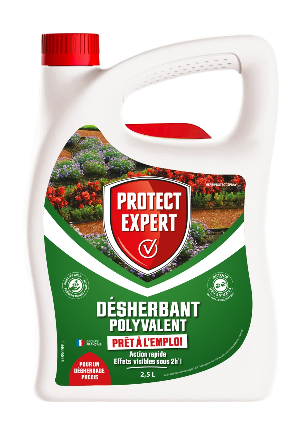 – à base de principes actifs d’origine végétale, le désherbant polyvalent prêt à l&aposemploi protect expert permet d’éliminer les principales « mauvaises herbes » autour des arbres et arbustes et des rosiers.